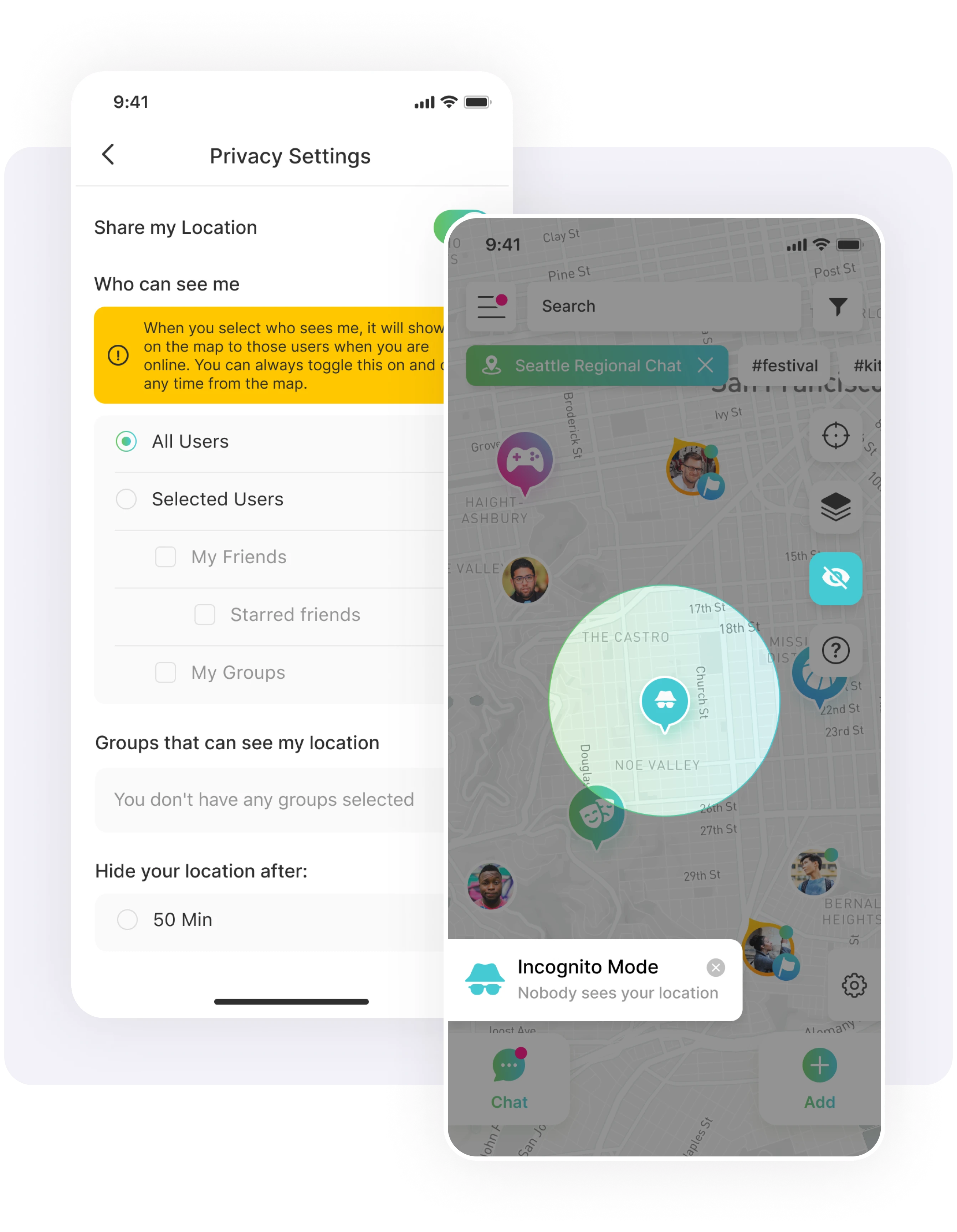 Connect with nearby friends through quick chats and location sharing